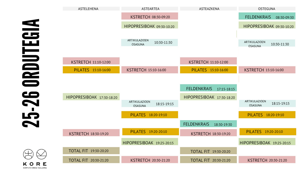 Hauek dira KOREko ordutegiak . Hartu lekua!!